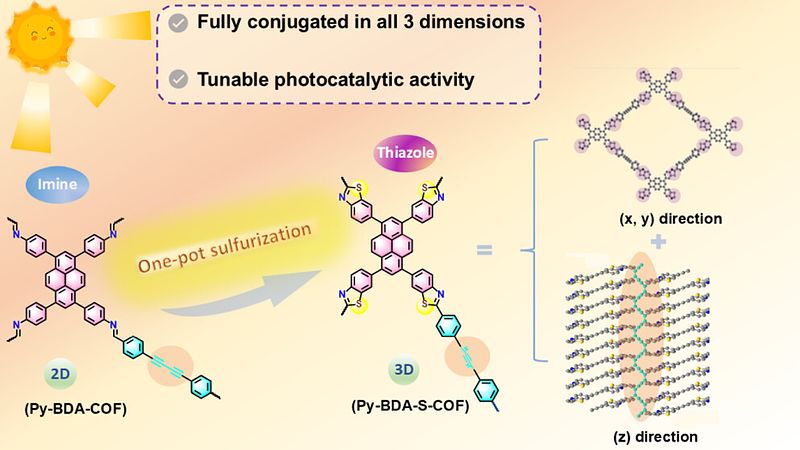 title = {Transforming 2D Imine into 3D Thiazole Covalent Organic Frameworks by Conjugated Connectors: Fully Conjugated Photocatalysts},